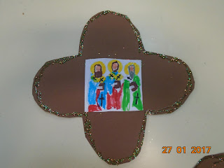 Έτσι, τα παιδιά έκοψαν κομμάτια από ύφασμα και τα κόλλησαν με ατλακόλ πάνω σε χαρτόνι 50x70.