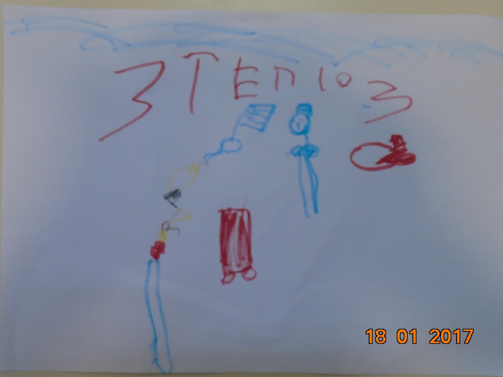 1. Έκανα αρχικά ένα αφαιρετικό σχέδιο, με την καθοδήγηση των παιδιών και σύμφωνα με τις επιλογές τους..