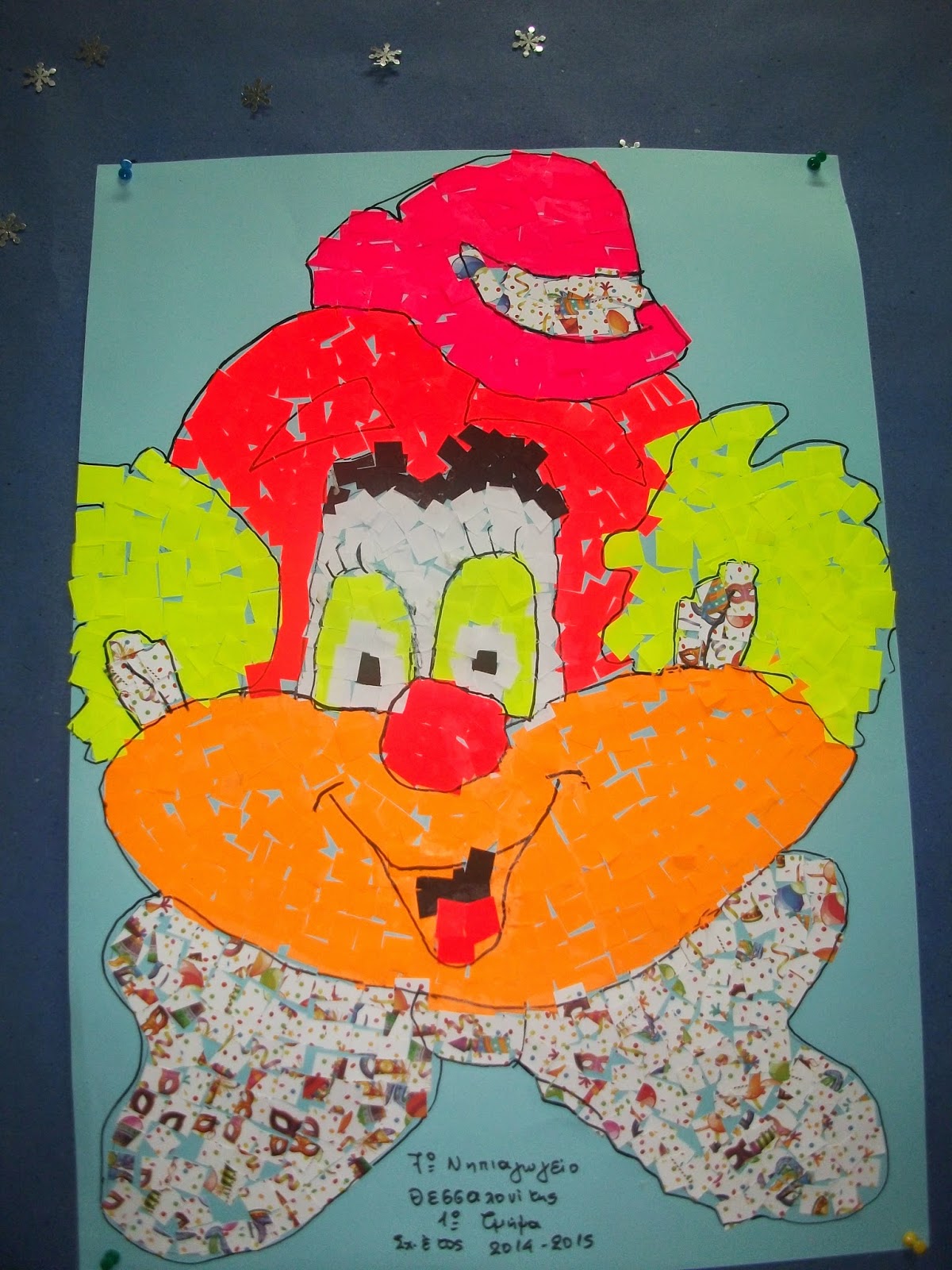 Μιας που ξεκινήσαμε νωρίς - νωρίς τα αποκριάτικά μας, είχα την ιδέα να ζωγραφίσω έναν κλόουν σε χαρτόνι Α4 και να κάνουμε έναν ψηφιδωτό κλόουν.