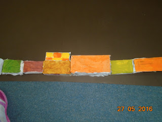 Αυτή τη φορά αδειάσαμε τα φαρμακεία μας...ό,τι μισοτελειωμένο φάρμακο υπήρχε στο σπίτι κάθε παιδιού, οδοντόκρεμες κ.α. μικρά κουτιά ήρθαν στα χέρια μας. Τα παιδιά με ατλακόλ κόλλησαν χαρτί κουζίνας πάνω στα κουτιά, έτσι ώστε να πιάνει ευκολότερα η τέμπερα. Χρωμάτισαν τα κουτιά, έβαψαν και ένα πλαστικό καπάκι για τον ήλιο και άρχισε η σύνθεση....