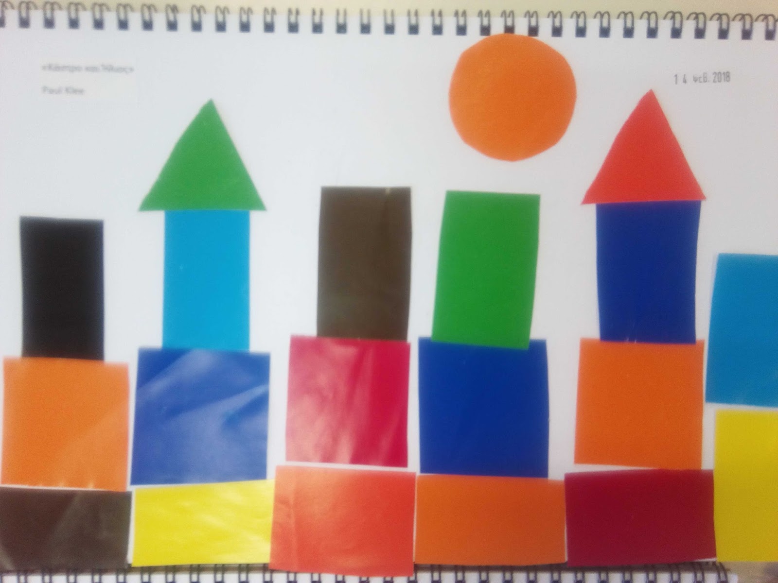 5.Τεχνική στο μπλοκ μας: Σχήματα με γλασέ χαρτάκια, "Κάστρο και Ήλιος", Paul Klee.