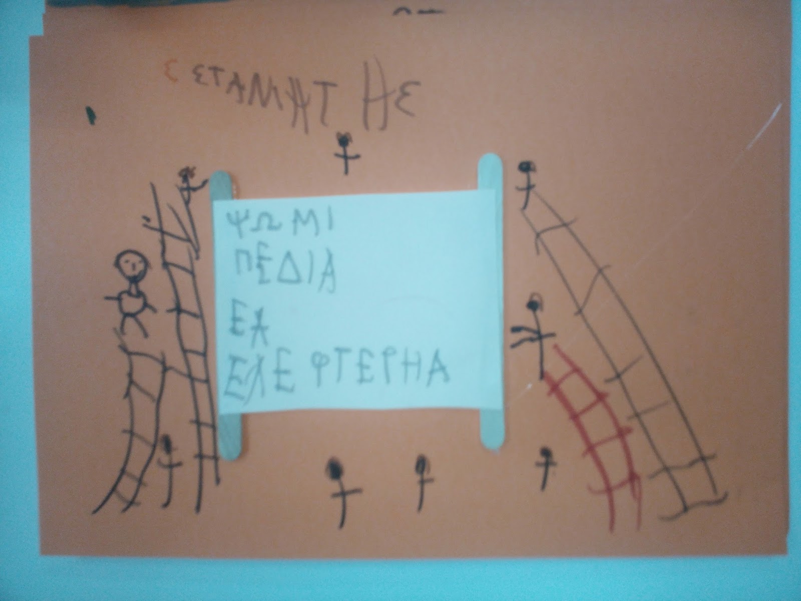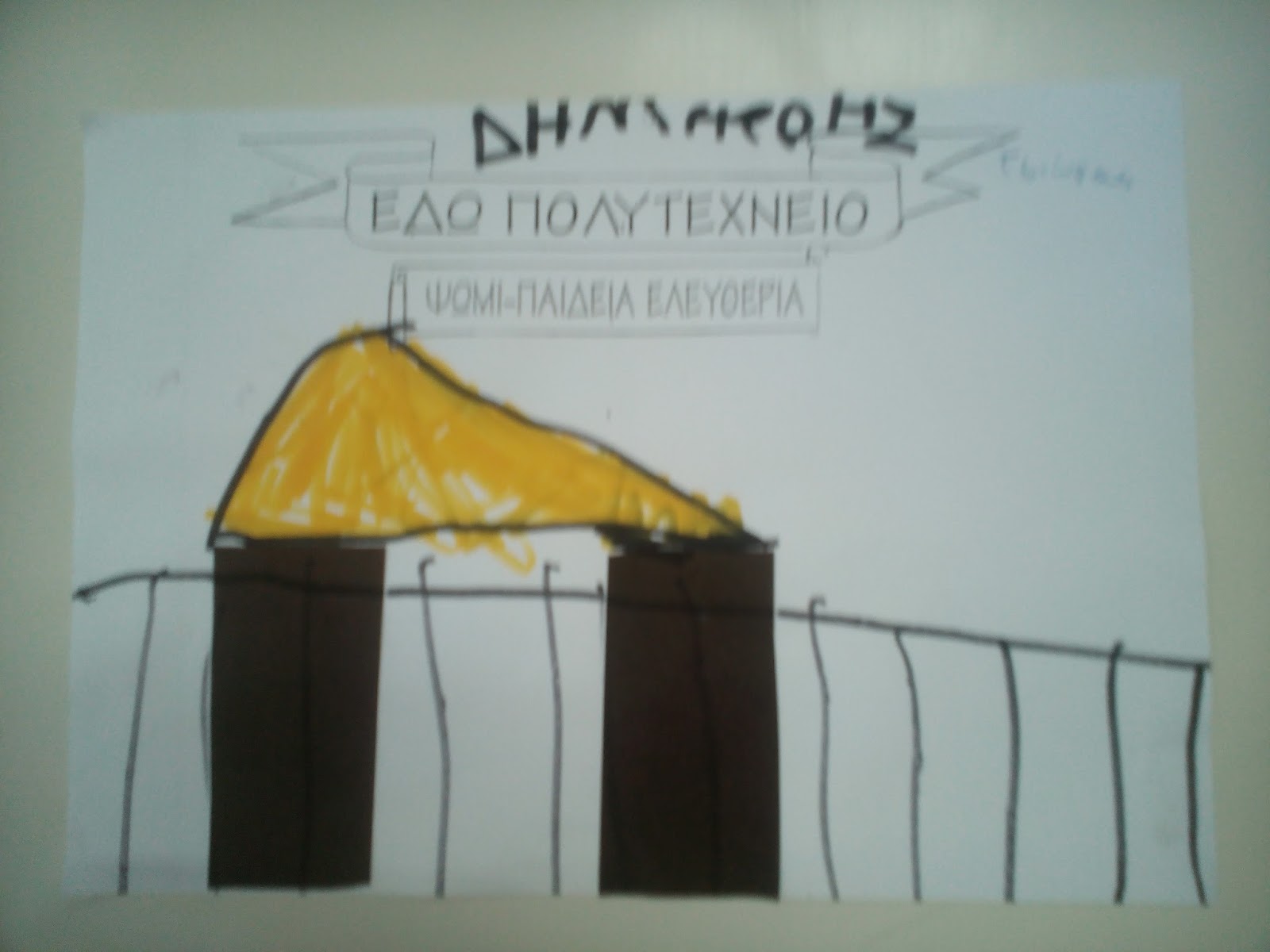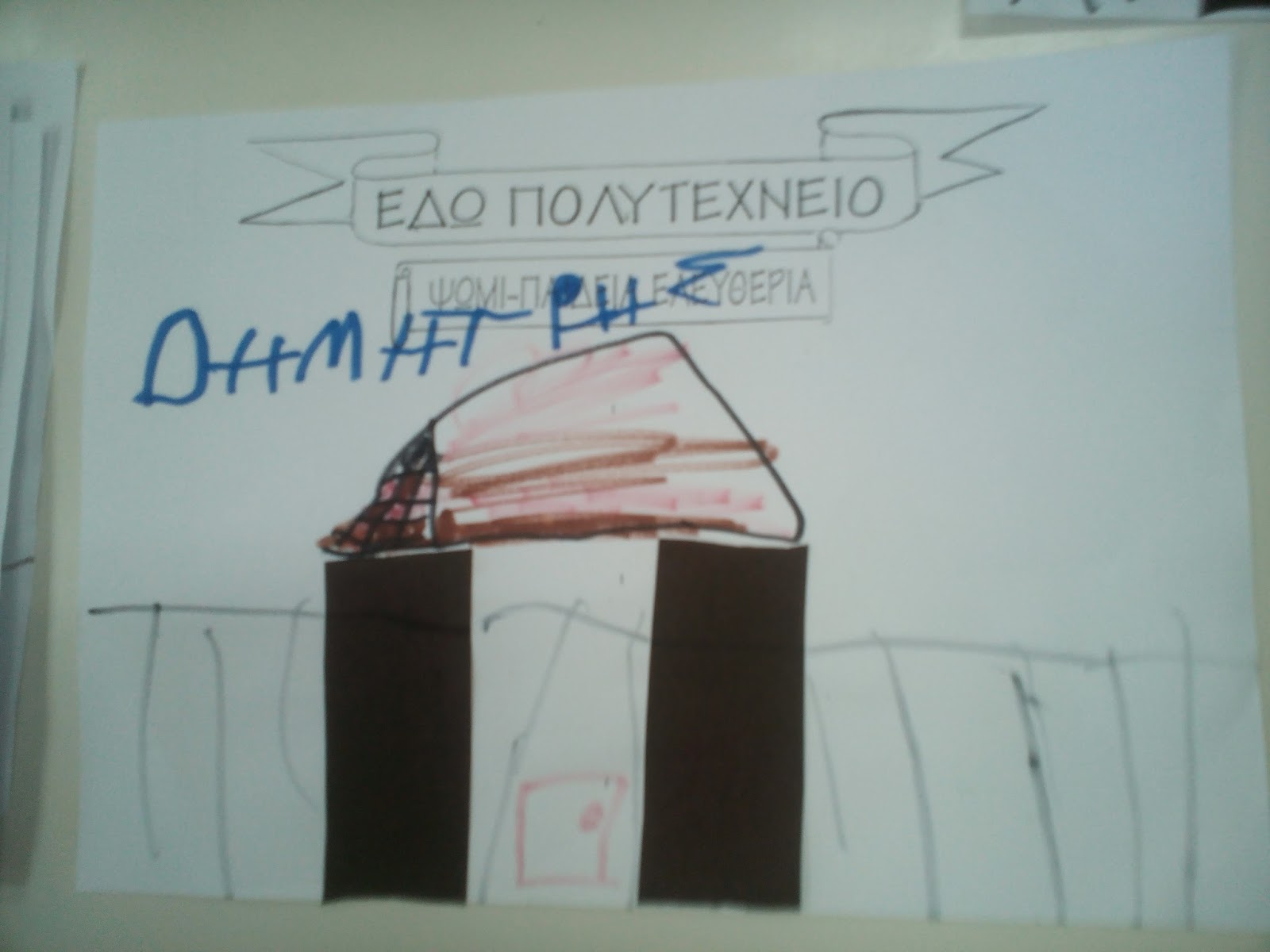Τα παιδιά ζωγράφισαν φοιτητές, τανκ και έγραψαν "ΕΔΩ ΠΟΛΥΤΕΧΝΕΙΟ" και "ΨΩΜΙ, ΠΑΙΔΕΙΑ, ΕΛΕΥΘΕΡΙΑ".