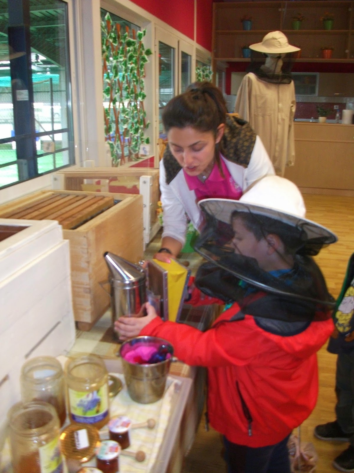 Τα παιδιά δοκίμασαν μέλι (όσα ήθελαν) και φόρεσαν το καπέλο του μελισσοκόμου, για να ζαλίσουν τις μέλισσες και να ξύσουν το μέλι από την κυψέλη.