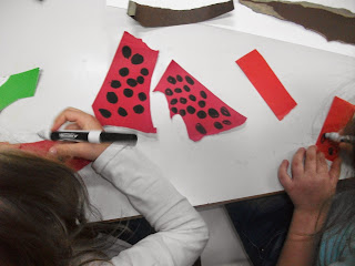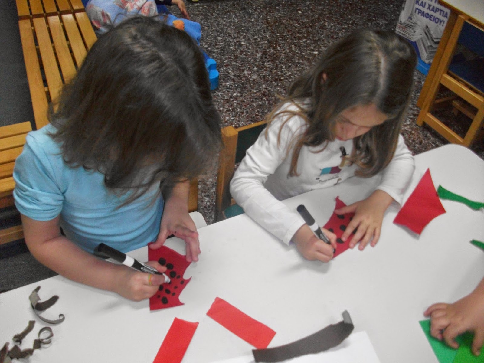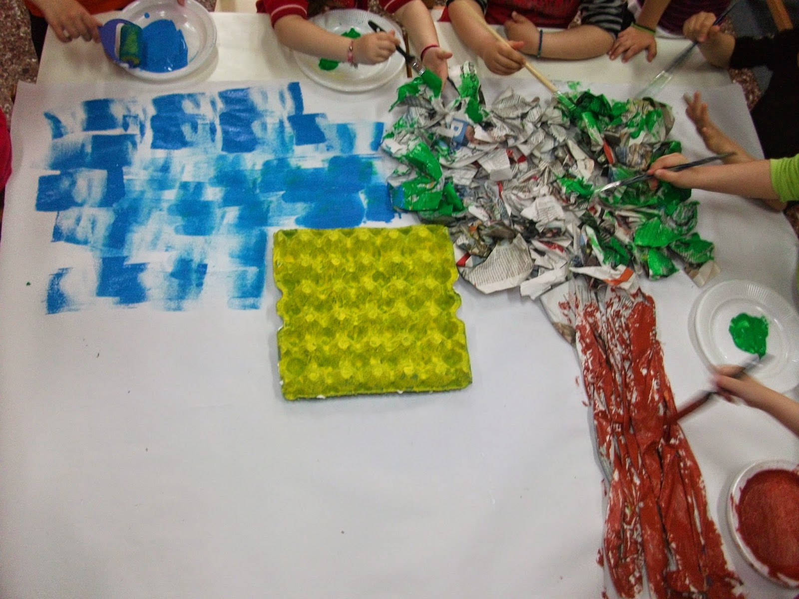 Μια εύκολη και όμορφη ομαδική εργασία , για να στολίσουμε την πόρτα μας, μιας και τους πίνακες που δουλέψαμε τους μετέφερα αυτές τις μέρες στο 6ο Φεστιβάλ Πολιτισμού του Δήμου Θεσσαλονίκης. Με περισσεύματα από το μαγικό μας κουτάκι και λίγη τέμπερα, μέσα σε 20 λεπτά εργαστήκαμε σε ομάδες και στολίσαμε την πόρτα μας.